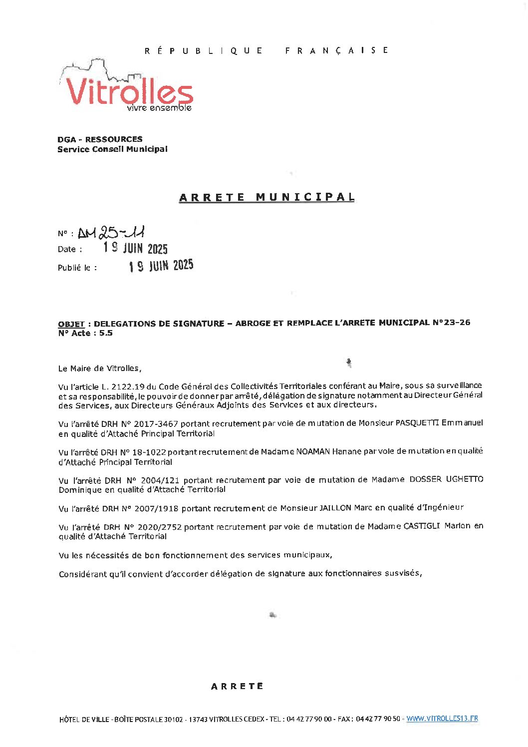 AM 25-11 DELEGATION DE SIGNATURE- ABROGE ET REMPLACE L ARRETE MUNICIPAL N° 23-26