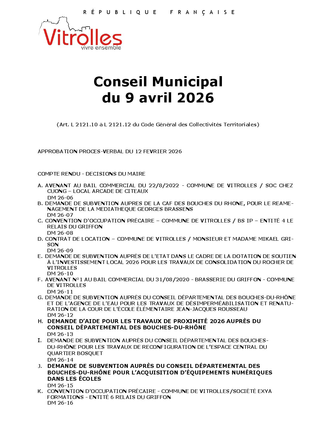 DEL 26-62 DEMANDE DE SUBVENTION AUPRES DE L’ETAT DANS LE CADRE DE LA DOTATION DE SOUTIEN A L’INVESTISSEMENT LOCAL 2026 POUR LES TRAVAUX DE CONSOLIDATION DU ROCHER DE VITROLLES