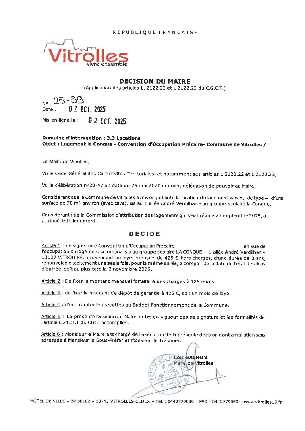 DM 25-39 Logement La Conque – Convention d'occupation précaire – Commune de Vitrolles