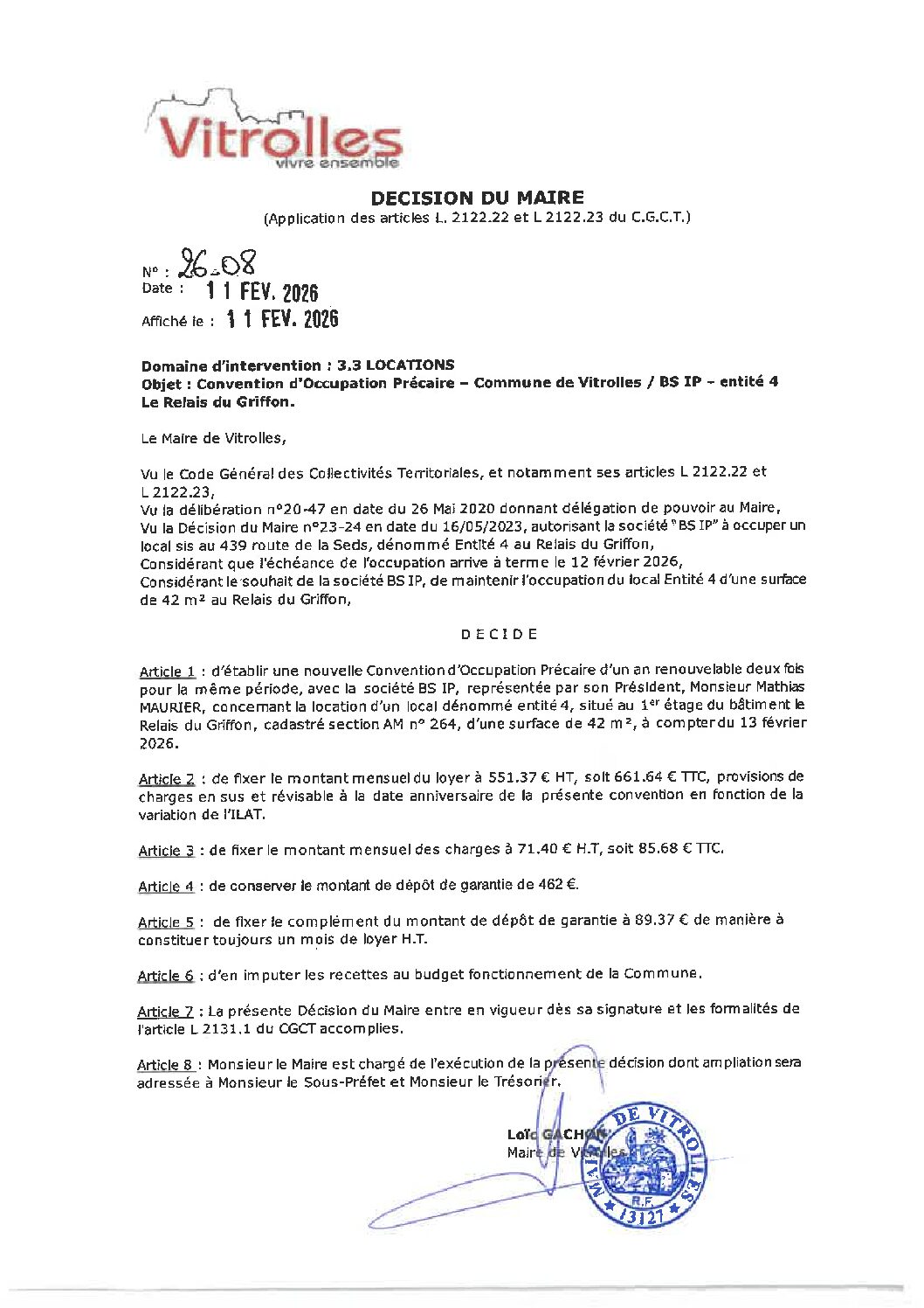 DM 26-08 Convention d'occupation précaire – Commune de Vitrolles / BS IP – Entité 4 Le Relais du Griffon