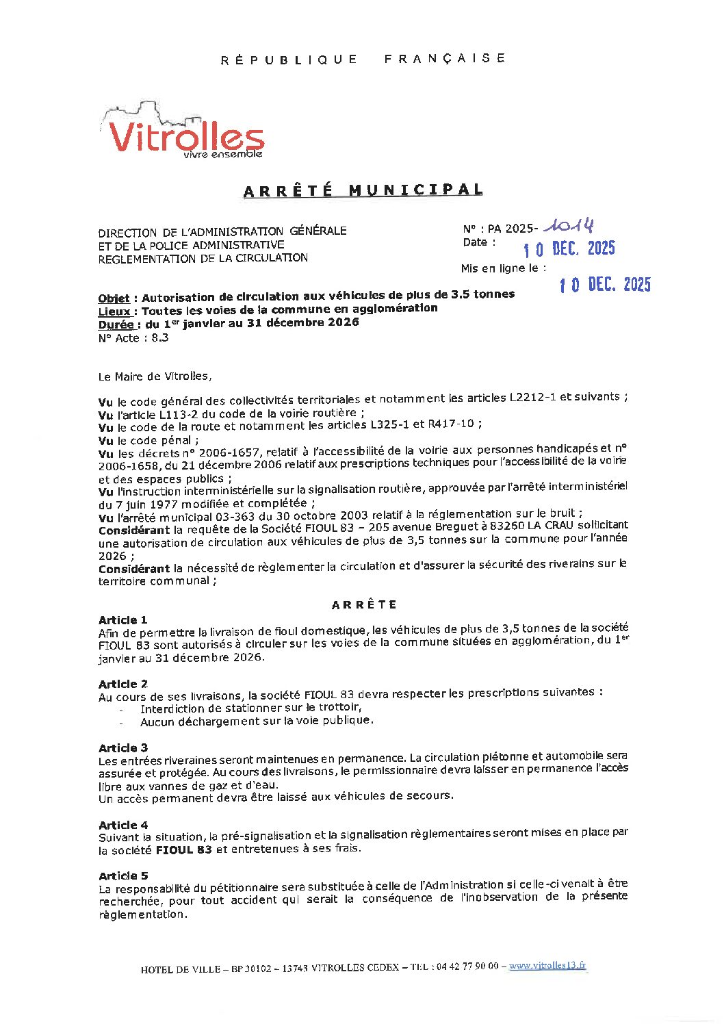 Arrêtés : PA 2025-1014 Annuel FIOUL 83