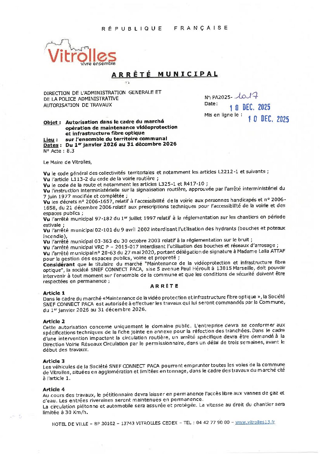 Arrêtés : PA 2025-1017 Annuel SNEF – Autorisation de travaux