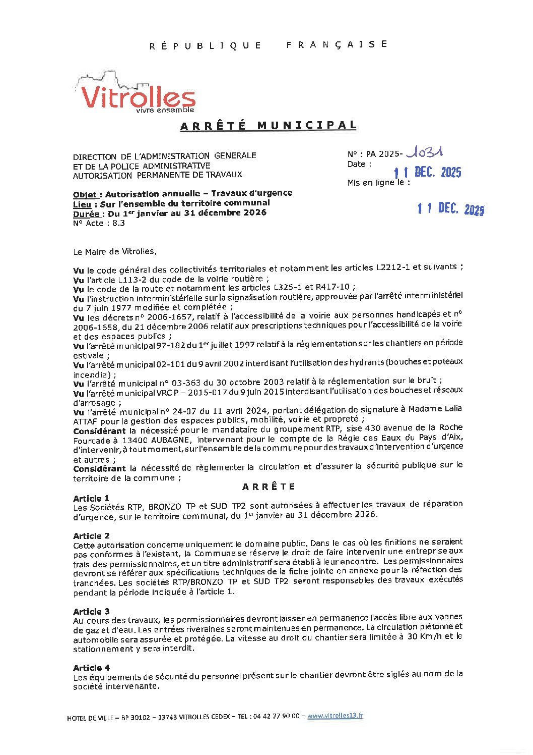 Arrêtés : PA 2025-1031 Annuel RTP – Sur la commune