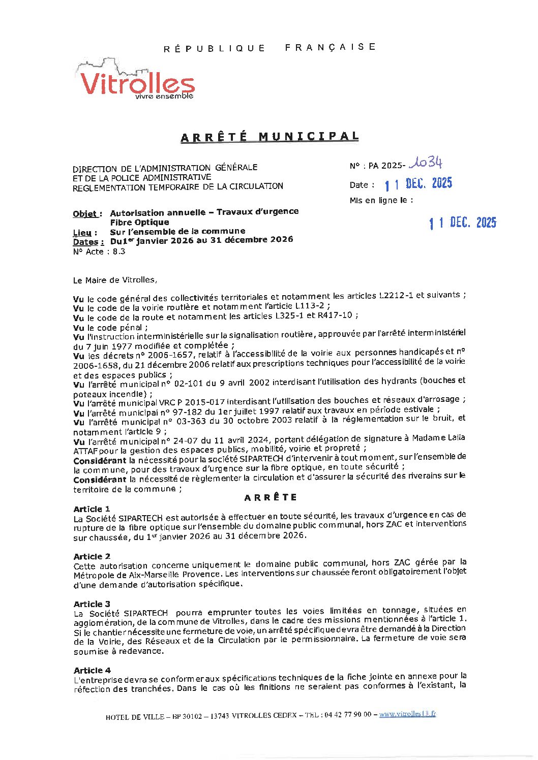 Arrêtés : PA 2025-1034 ANNUEL SIPARTECH