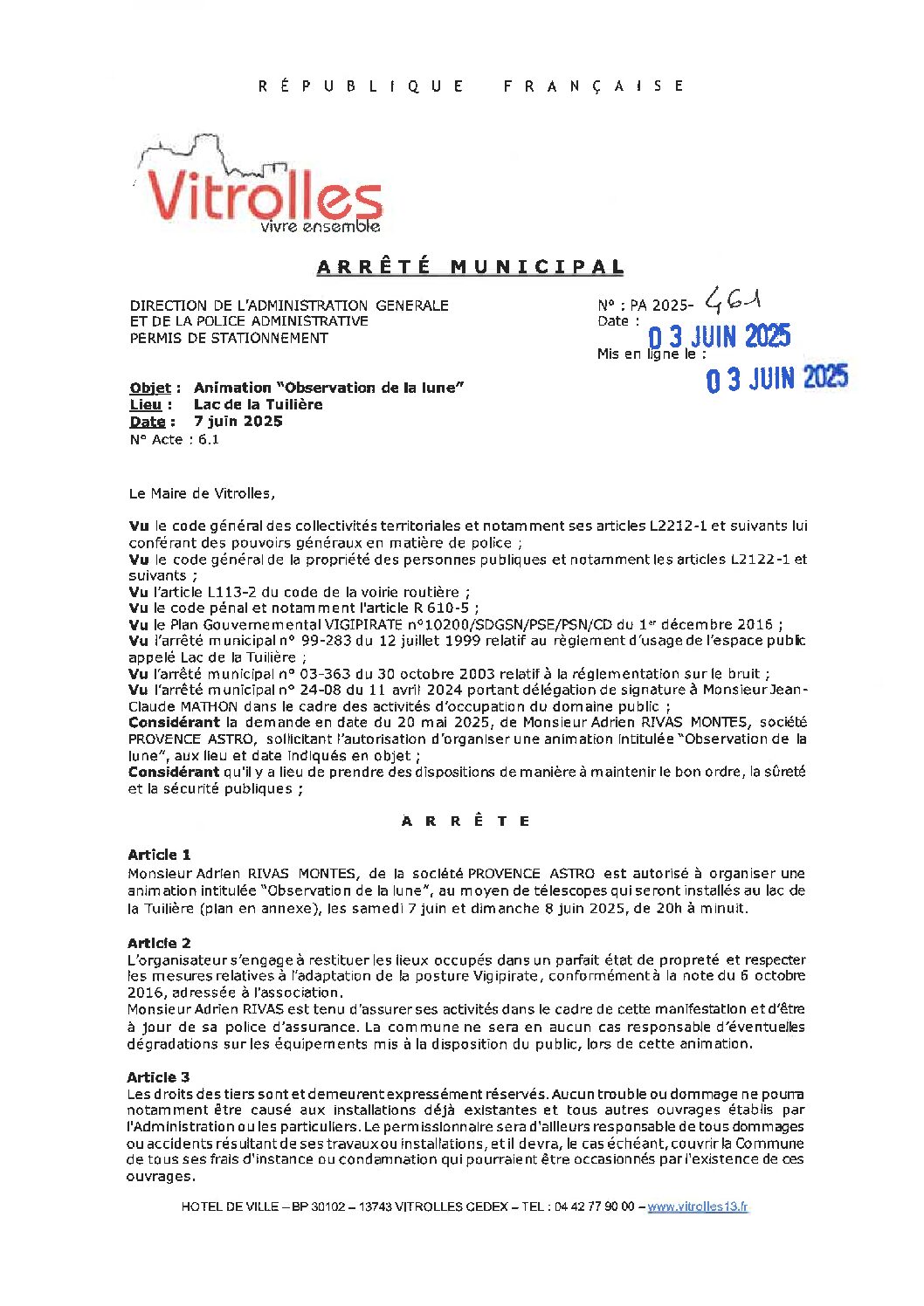 Arrêtés : PA 2025-461 Observation de la lune – Lac de la Tuilière