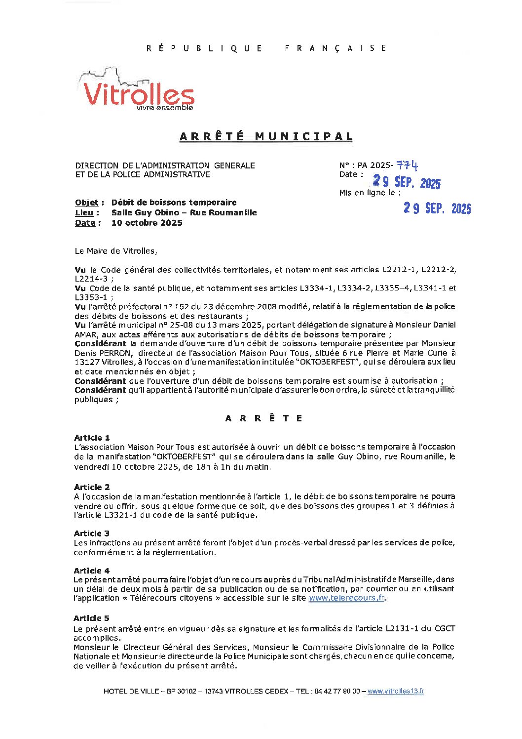 Arrêtés : PA 2025-774 DB Asso MPT – Salle Guy Obino