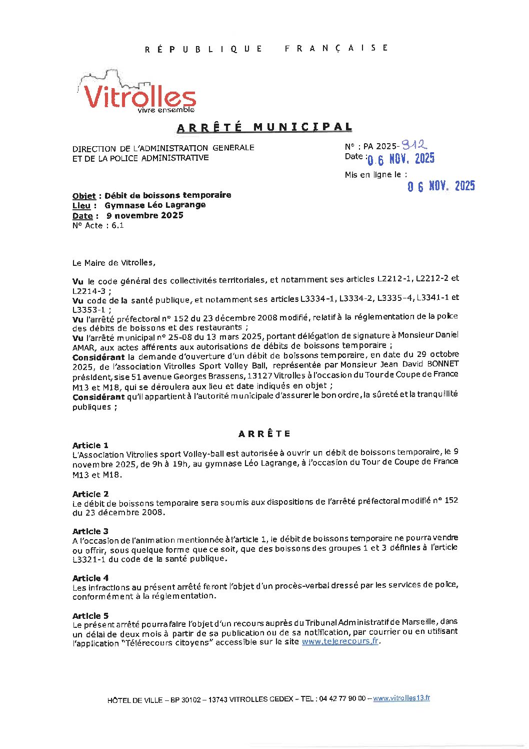 Arrêtés : PA 2025-912 DB Vitrolles Sport Volley Ball – LEO LAGRANGE