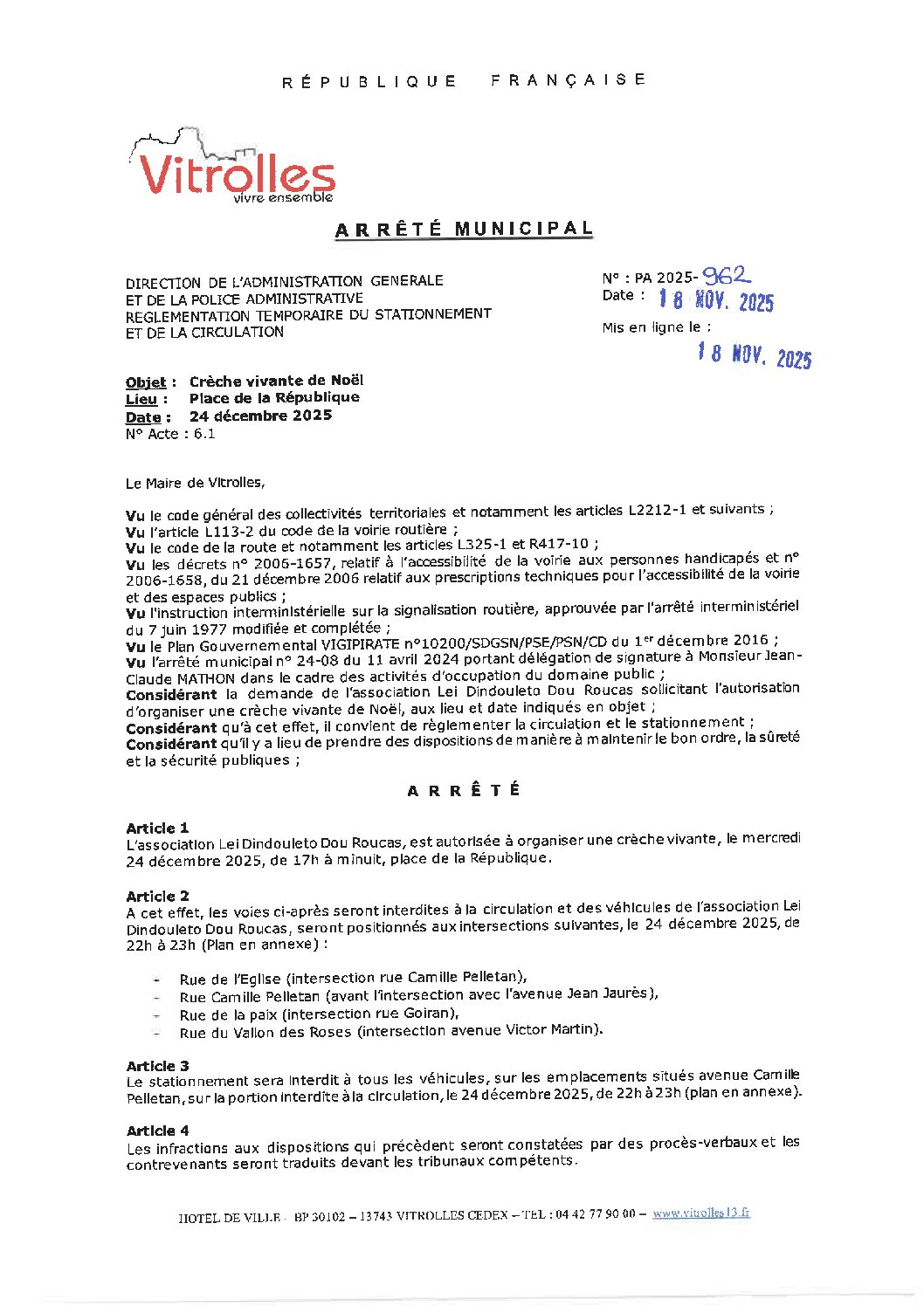 Arrêtés : PA 2025-962 Crèche vivante – Vieux village