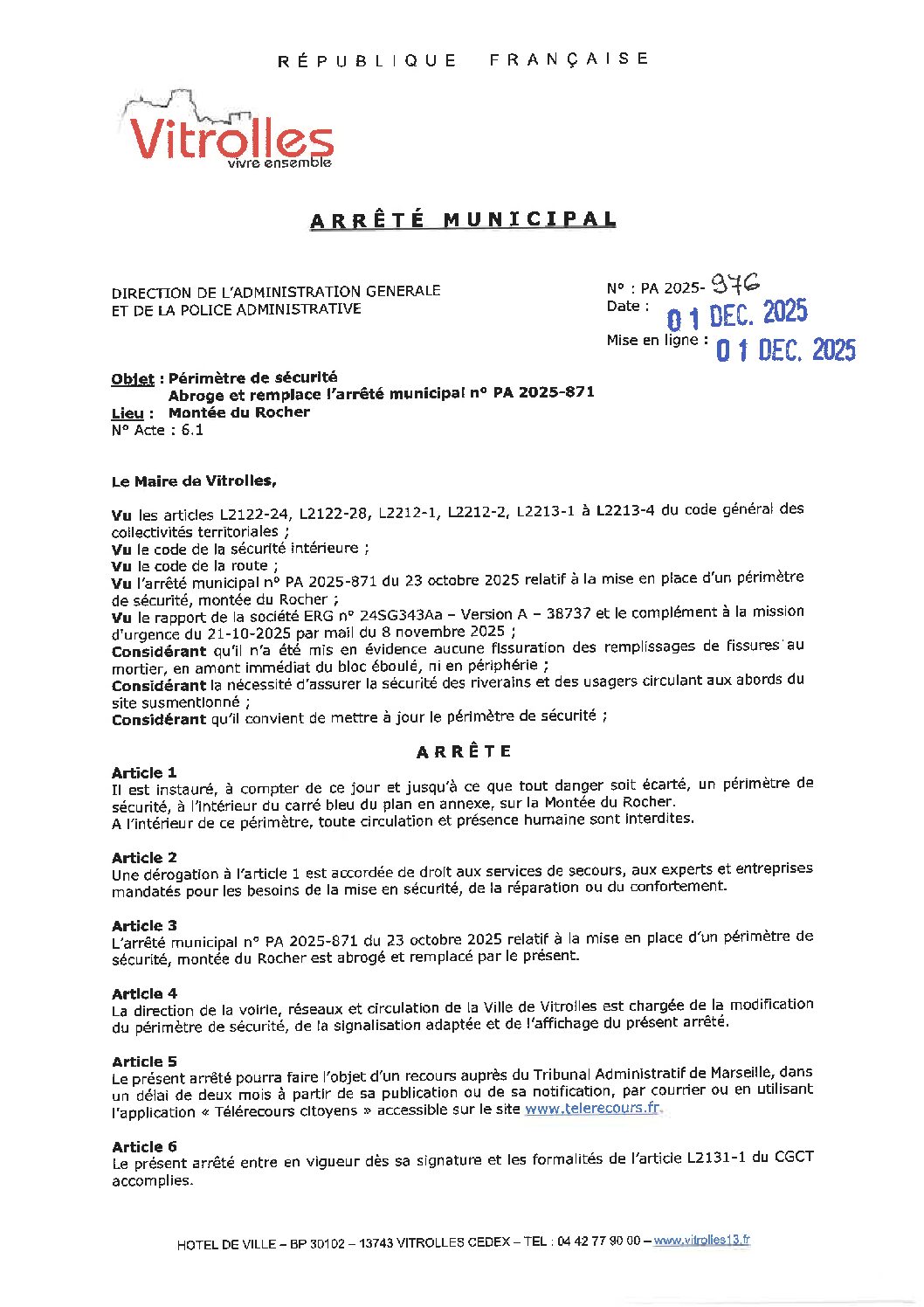 PA 2025-976 Modification d'un périmètre de sécurité – Montée du rocher – Abroge et remplace PA 2025-871