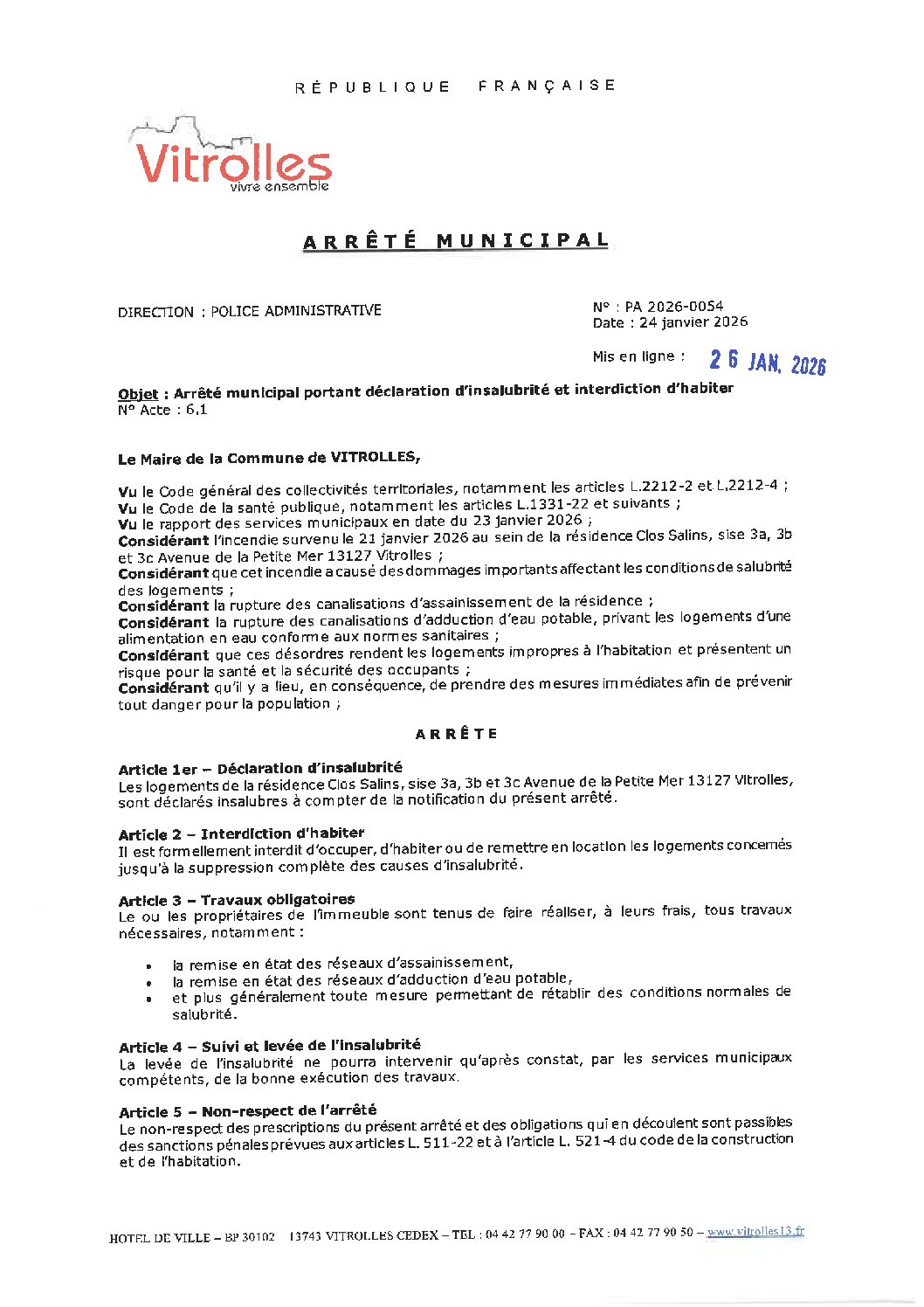 • PA-2026-0054 Arrêté d'insalubrité et interdiction d'habiter Clos Salins