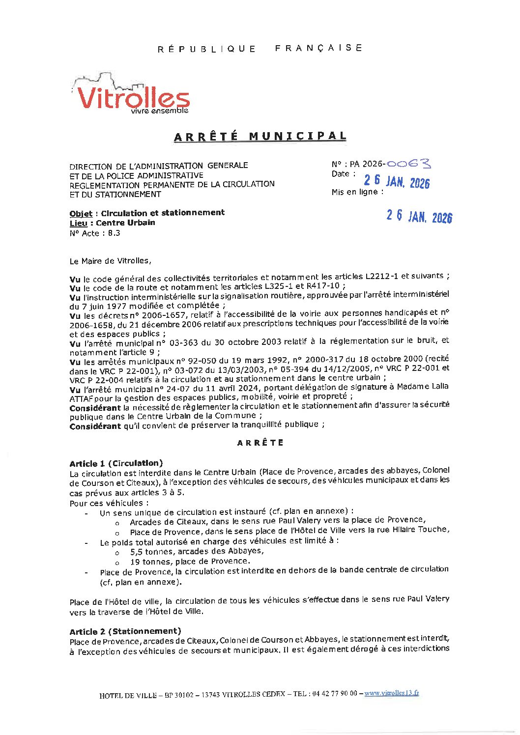 Arrêtés : PA 2026-0063 Place de Provence – Centre Urbain