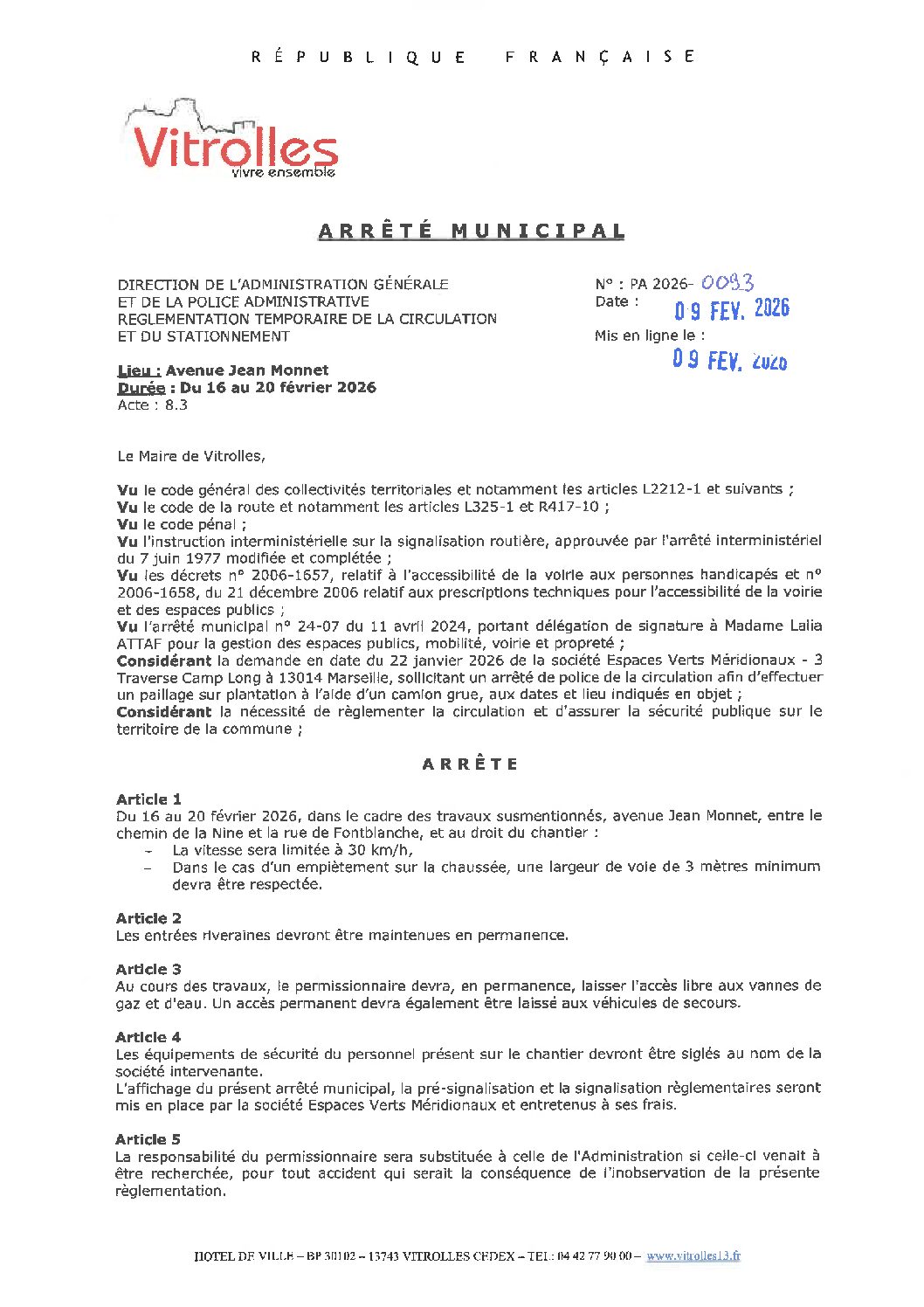 Arrêtés : PA 2026-0093 Règlementation de la circulation – Avenue Jean Monnet