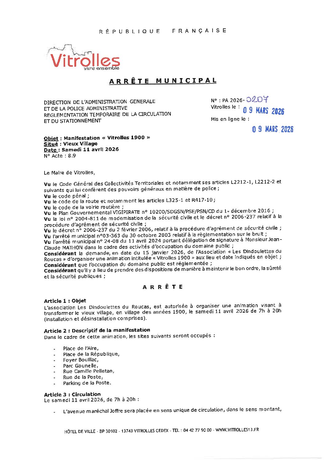 Arrêtés : PA 2026-0207 Vitrolles 1900 – Vieux Village