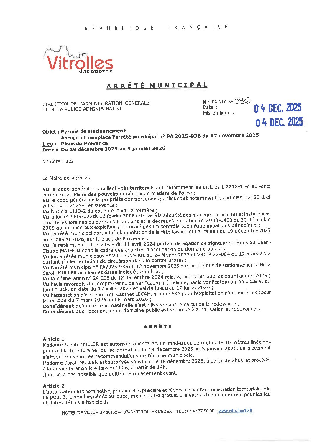 Arrêtés : PA2025-996 Abrogation du PA2025-936
