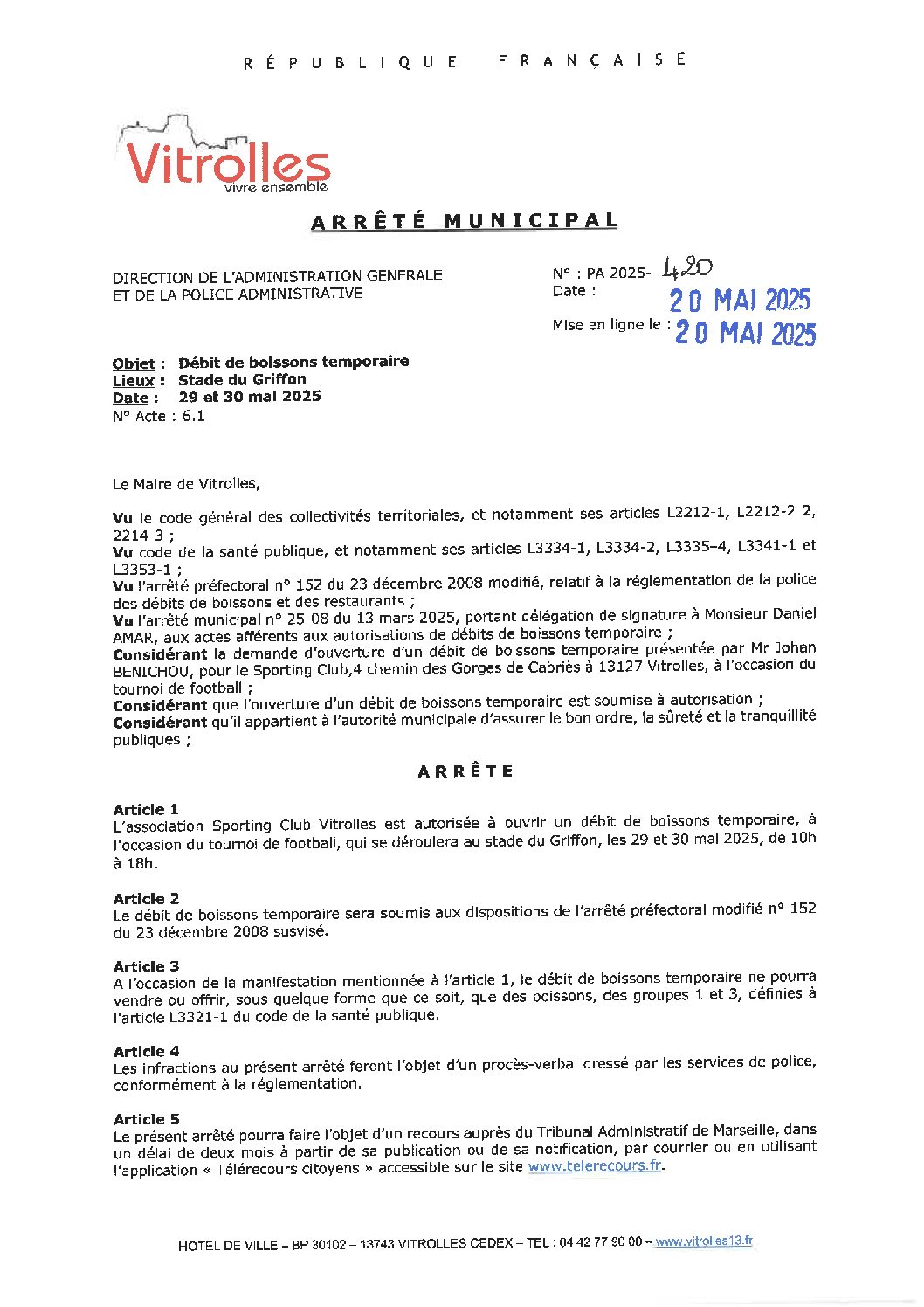 Arrêtés : PA_2025-420 DB Sporting Club – Stade du Griffon