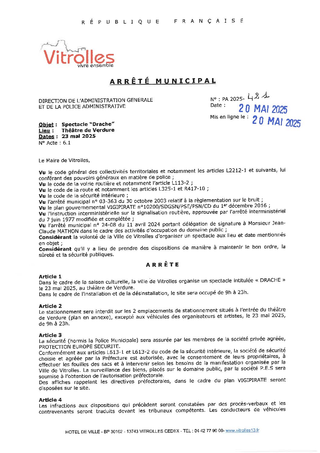 Arrêtés : PA_2025-421 Spectacle Drache – Théâtre de Verdure