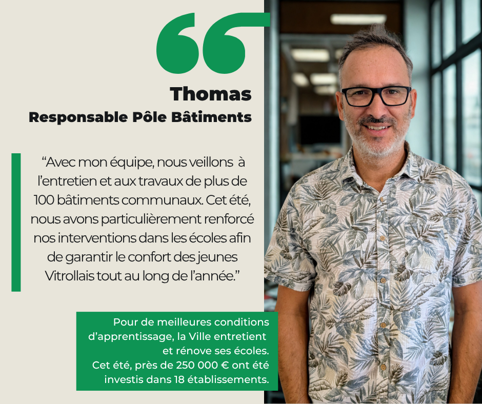 Chaque jour, des femmes et des hommes contribuent au bon fonctionnement de la ville et au bien-être des Vitrollais. Ils accompagnent les enfants, entretiennent nos écoles, veillent à l’accueil des tout-petits, enseignent et transmettent leur passion, ou prennent soin de notre cadre de vie.