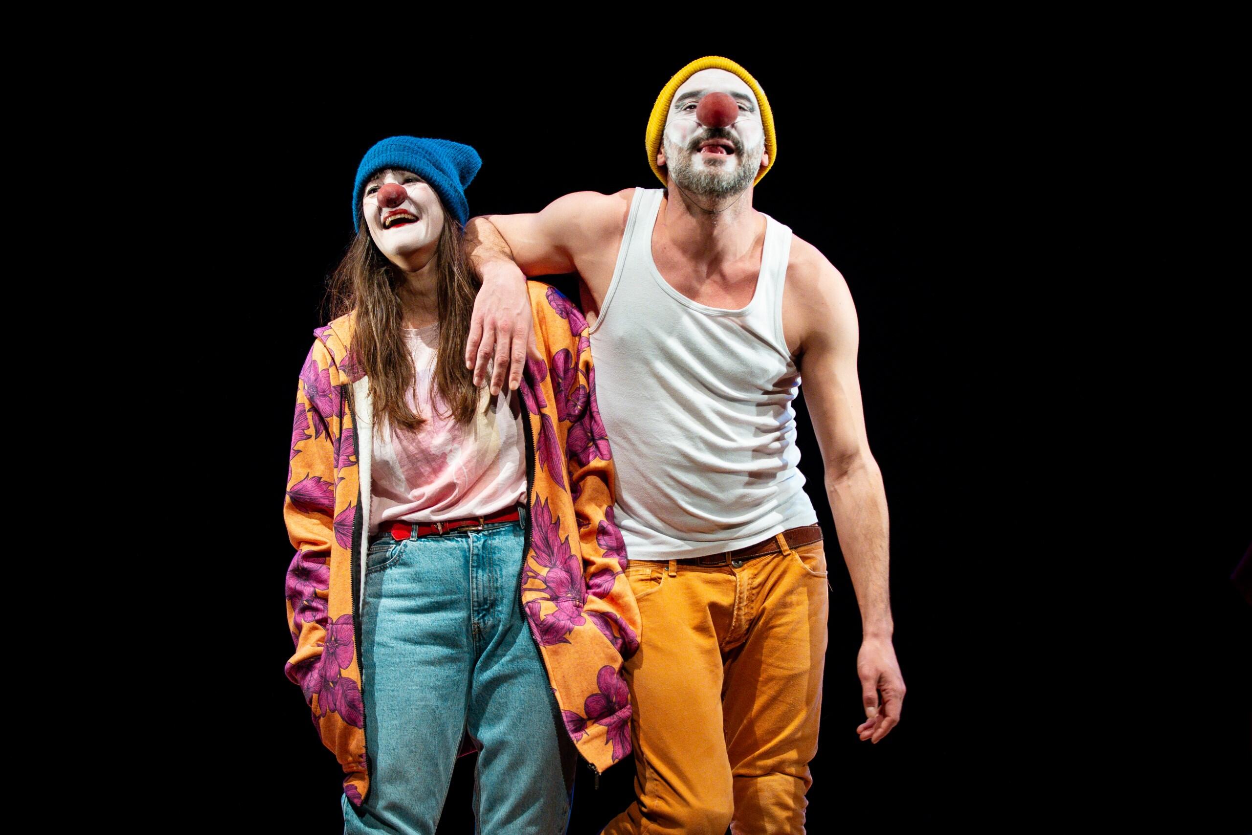crise politique et économique et des guerres, seuls deux clowns sont présents. Comme pour conjurer la bêtise des Hommes par le jeu,